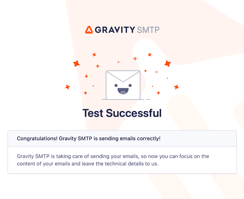 4. Finally, go to the Tools tab of the Gravity SMTP plugin and enter your own email address then send yourself a test email, to check it’s working successfully. The test email should arrive looking like the below example.